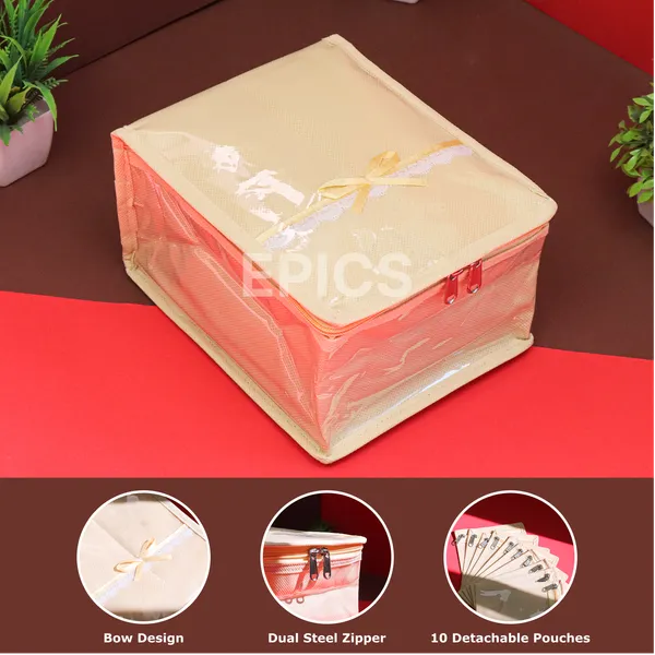 Premium Jewelry Organizer Box with Transparent Pouches – Non-Woven Fabric, Steel Zipper, Travel-Friendly Jewelry Storage Case, Ideal for Necklaces, Earrings & Bangles (Orange)