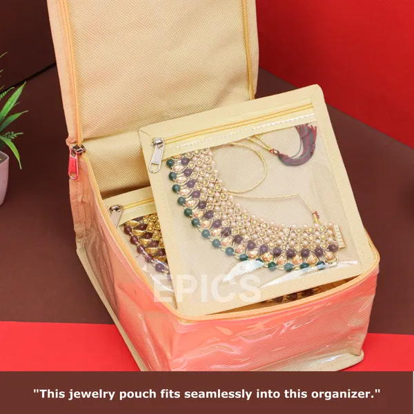 Premium Jewelry Organizer Box with Transparent Pouches – Non-Woven Fabric, Steel Zipper, Travel-Friendly Jewelry Storage Case, Ideal for Necklaces, Earrings & Bangles (Pink)