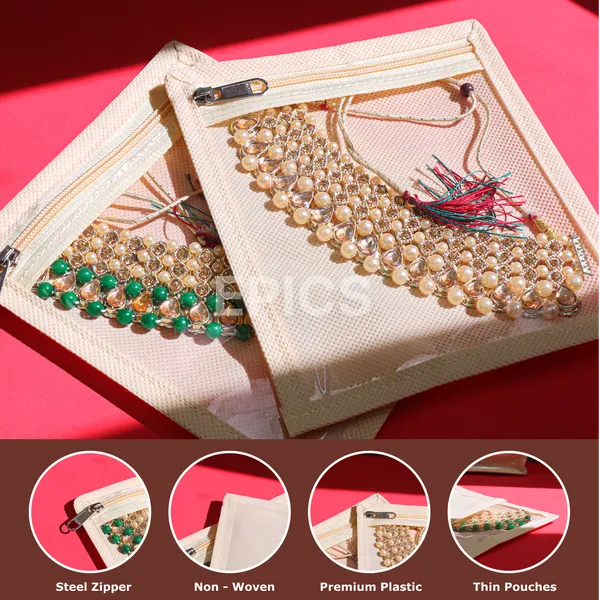 ⏩MATERIAL: Crafted from durable non-woven fabric, multiple transparent pouches made of premium plastic, allowing you to quickly view and select your jewelry, and the steel zipper ensures a secure closure.🪄